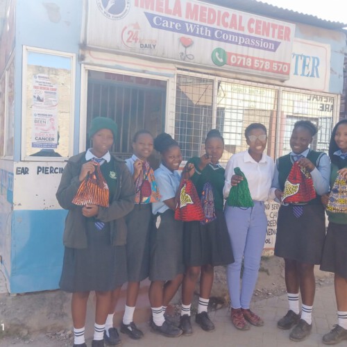 In 2022, we started with educational work for girls in the schools around the Imela Medical Center. We advise girls on sexuality and contraception and distribute menstrual hygiene products free of charge.